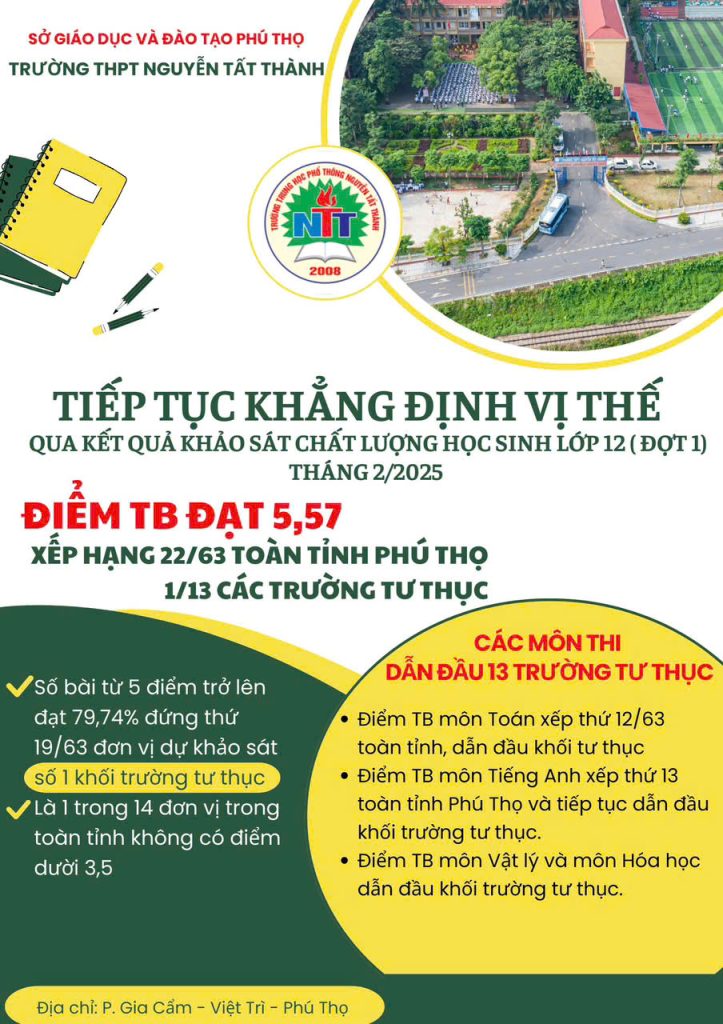 ?Trong không khí hân hoan và tiết trời lạnh của mùa xuân, ngày 13/01 vừa qua,Đoàn trường THPT Nguyễn Tất Thành vui mừng tổ chức hoạt động trải nghiệm tháng 1 với chủ đề: “Văn hóa dân gian Tết truyền thống”. Đến dự với chương trình, có sự hiện diện của các thầy cô giáo trong Ban giám hiệu nhà trường, thanh tra nhân dân, tổ trưởng CM, chủ tịch công đoàn, ĐTN, các thầy cô giáo và gần 1400 hs.